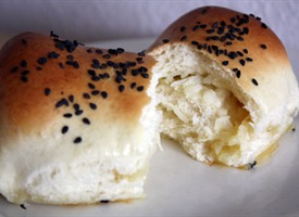 Once buns have rested, brush the tops with a light coating of egg wash and sprinkle with sesame seeds. Bake about 20 minutes or until golden brown. Serve immediately.