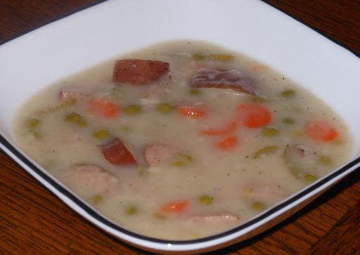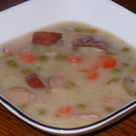 Creamy soup that has many veggies making it an inexpensive meal - with leftovers! This soup goes great with fresh bread; also good for freezing.