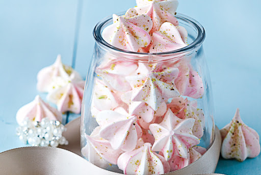 Both airy and crunchy, swirly one-bite meringues make the perfect holiday gift. For a sophisticated yet simple ending to a dinner party, crumble a couple of them over a bowl of ice cream then top with fruit.