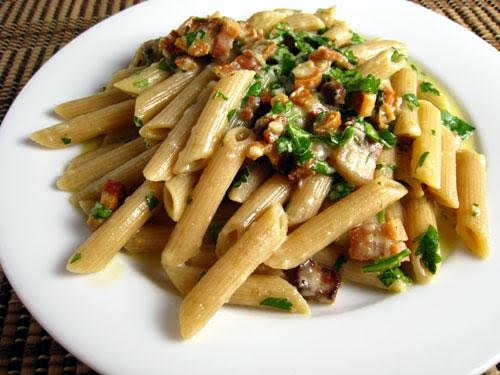 7. If the sauce is too thick add a bit of the reserved pasta water to thin.