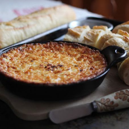 Pour the mixture into a 6-inch (15-cm) baking dish or any oven-safe dish. Bake for 50 minutes to one hour, till everything is melted together. When the top crust is brown and almost burnt-looking, the dip is ready. The darker brown the crust becomes, the better the flavors are.