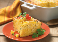 Preheat the oven to 350 degrees. Spray a 8x12-inch glass dish with non-stick cooking spray. Drain the pineapple; chop and set aside. Combine the cornmeal, sugar, baking powder and salt in a large bowl. Mix in the cottage cheese, pineapple and green onions. Beat the egg whites in an electric mixer until stiff peaks form. Gently fold whites into the cottage cheese mixture. Pour the batter into a prepared baking dish. Bake for 50 minutes, or until firm. In a small sauce pan, heat up the Chile Verde sauce until just boiling. Remove from the heat. Cut the casserole into squares and ladle the sauce on top. Sprinkle with cheese or Pico de Gallo if desired.