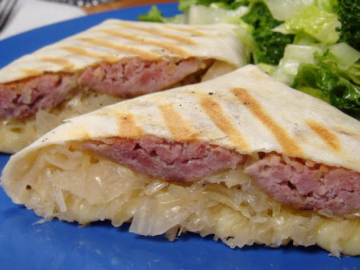 Bratwurst Wraps With Onion-Sauerkraut Filling