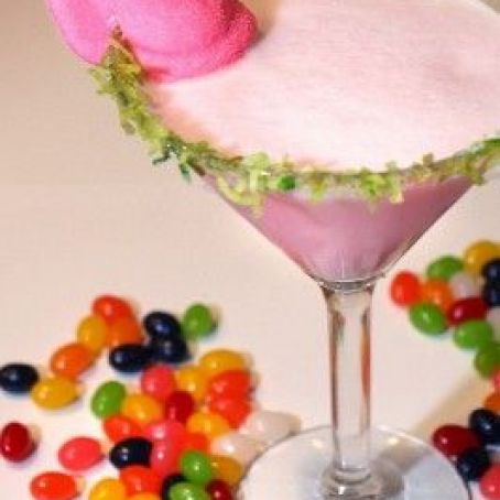 Rim a martini glass with thick simple syrup and then dip into dyed green coconut flakes, then adorn with a little marshmallow peep.