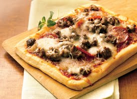 2. Spread about 2 tablespoons pizza sauce just to rim of each crust; sprinkle with oregano. Top with pepperoni, beef and cheeses.
