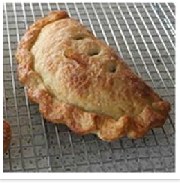 Form a dough piece into a ball, place on a floured work surface, and roll into a circle about 8 inches in diameter. Spoon 1/3 to 1/2 cup apple filling in the center. Fold dough over filling, leaving about 1 inch of dough on the bottom side visible below the top side. Gently press dough closed around filling, using your fingertips.