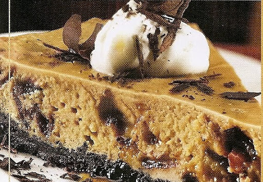 In a bowl, mix softened carmel cream cheese on medium speed until smooth. Add eggs one at a time until well blended. Fold in crushed skor bars. Pour into crust.