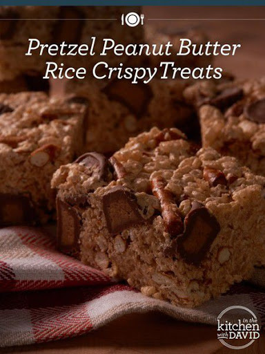 Remove the pan from the heat, add the cereal and chopped pretzels, and stir until well combined. Add the mini peanut butter cups and gently mix until fully incorporated.