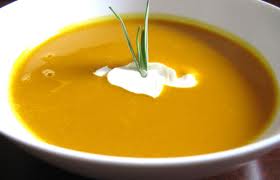 Bring soup to simmer, thinning with more stock, if desired. Ladle into bowls. Top each with sour cream and grated carrot.
