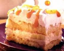 Combine pudding mix and cold milk in a medium bowl and whisk to thicken. Add 1/3 c Marzetti Caramel Apple Dip and sour cream and whisk to combine. Fold in whipped topping. Dip 15 ladyfingers in orange juice and arrange one layer of soaked fingers in a 9x11" dish. Spread 1/2 c Marzetti Caramel Apple Dip on top of ladyfingers. Spoon half of cream mixture over caramel and spread into an even layer; top with half of banana slices. Repeat process with remaining ingredients.