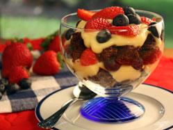 Distribute half of the brownie pieces over bottom of a medium glass serving bowl and layer with half the vanilla pudding, 1 cup strawberries, and 1/2 cup blueberries. Repeat layers, using remaining ingredients. (See Options.)