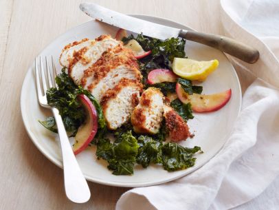 Almond Fried Chicken with Roasted Kale and Apples