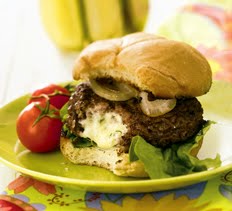1. Heat grill. Form beef into 12 (4-inch) patties 1/4 inch thick. Combine spreadable cheese, cheddar cheese, parsley and salt in medium bowl. Divide mixture into 6 portions; spoon on top of 6 of the patties, spreading to within 3/4 inch of edge. Top with remaining patties; pinch edges to seal well.