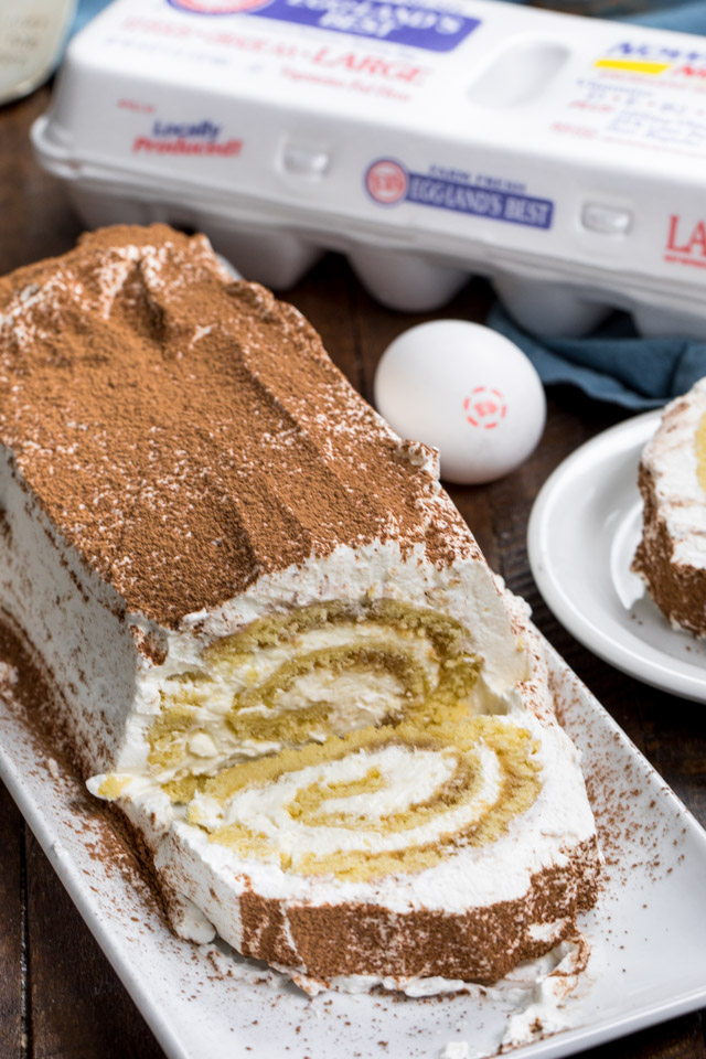 This easy cake roll recipe is a Tiramisu Cake Roll - a vanilla sponge cake filled with Tiramisu filling!