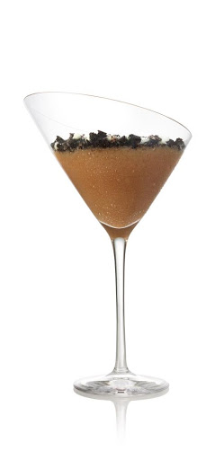 Combine ingredients in a cocktail shaker over ice. Shake and strain in a Martini glass rimmed with crushed cream-filled chocolate sandwich cookies.