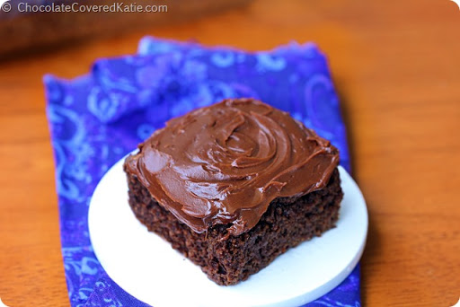 Preheat oven to 350 degrees F, and grease an 8-in square or round pan. Set aside. In a large bowl, combine the flour, cocoa powder, baking soda, salt, optional chips, and sweetener, and stir very well. (If your nut butter is not stir-able, gently heat it until stir-able.) In a new bowl, whisk together the nut butter, yogurt, water, and vanilla. Pour wet into dry and stir until just combined (don’t over-mix), then pour into the greased pan. Bake 25 minutes or until batter has risen and a toothpick inserted into the center of the cake comes out mostly clean. (I like to take it out when it’s still a little undercooked, let it cool, and then set in the fridge overnight. This prevents overcooking, and the cake will still firm up nicely as it sits.) If you can wait, I highly recommend not taking a taste until the next day… this cake is so much richer and sweeter after sitting for a day.
