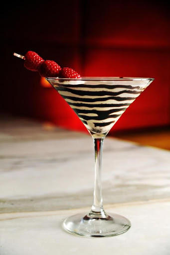 - 1/4 oz. splash of cream and poured into a Godiva Dark Chocolate swirled glass