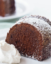 Preheat the oven to 350°. Butter and flour a 12-cup bundt pan. In a bowl, whisk the flour, cocoa powder, baking soda and salt.