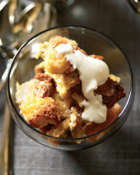 In a reality-TV moment that shocked us all, Tre Wilcox of Top Chef Season 3 was eliminated after preparing a dense, dull apple bread pudding in an epic Restaurant Wars. Gail Simmons rescues his recipe by sautéing the apples in brandy and butter, then soaking both them and brioche in lots of vanilla custard before baking.