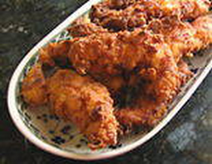 Heat oil in a deep heavy skillet to about 350°. Fry several chicken pieces at a time. Fry, turning several times with tongs, until deep golden brown, about 6 to 8 minutes for each batch. Serve with Come Back Sauce, Jezebel Sauce, or Sweet and Sour Sauce.
