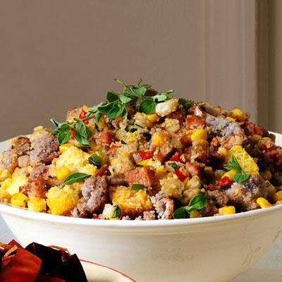 *1*.Heat oven to 300°F. Place cornbread on a large baking sheet. Bake 30 minutes, gently stirring cubes twice, until lightly toasted and firm. Cool completely. Place cubes into a large bowl; toss with cilantro and oregano.