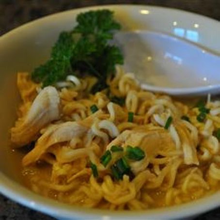 Stir the ramen noodles into the crock; reserve seasoning packets. Cook on High until noodles are soft, 15 to 20 minutes. Season to taste with ramen seasoning packets. Garnish soup with cucumbers, green onions, cilantro, and basil before serving.