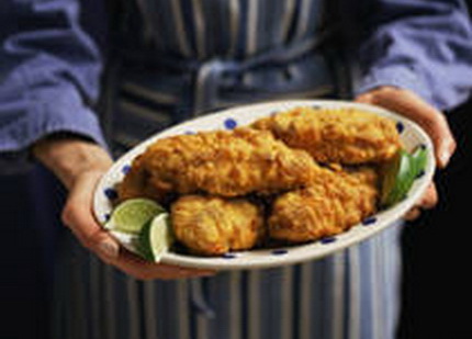 Rinse chicken breasts and pat dry; sprinkle all over with salt and pepper. Drain well. In plastic bag, combine flour, salt, pepper, and baking powder. Shake chicken the flour mixture until well-coated. Refrigerate for 2 to 4 hours.