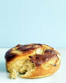 *4*.Preheat oven to 375°F, with rack in lowest position. Butter a 9-inch round cake pan. Roll dough into a rope (about 24 inches) on a floured surface. Coil into a circle, and transfer to pan. Butter plastic wrap, and cover dough. Let rise again until dough almost doubles in volume, about 45 minutes more.