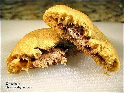 Place on ungreased cookie sheet. Cookies will flatten as they bake, with candy bar as center filling. Bake at 350 degrees for 12-18 minutes or until light golden brown.