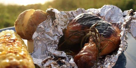 3. Cook on the coals or the grill for about 15 minutes. Turn over and cook for another 15 minutes.