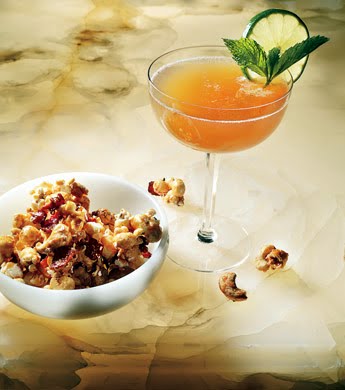 Add bacon and cashews to bowl with popcorn.