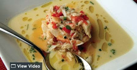 Silky Corn Soup with Truffle Oil and King Crab Meat