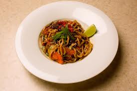 5. heat the remaining 2 tbsp of veggie oil in a large skillet over high heat. when it's very hot, add the bell peppers, remaining red onion, pea pods, garlic, and ginger; stir fry for 2 min. add the edamame and heat through, 2-3 min more. add the hoison sauce, remaining lime juice, chili sauce, and reserved starchy pasta water. add the drained pasta and toss over med-high heat for a minute to coat with the sauce. turn off the head, toss in the cilantro and mint. serve the noodles in bowls with the mushrooms and cucumber salad as side dishes.