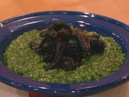 While the liquids are heating up, add the spinach, pine nuts, a few grates of nutmeg and a handful of Parmigiano-Reggiano to a food processor. Pulse a few times to get everything chopped up. Add a ladleful of the hot stock and water and about 1 tablespoon EVOO. Run the machine to puree and reserve.