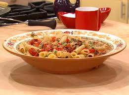 Once the garlic is done roasting, allow it to cool enough to handle, then hold the head in your hand over the bowl with the pasta water and squeeze out all of the roasted cloves into the bowl. Add the tomatoes and mash everything together.