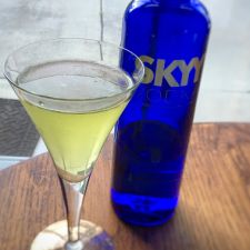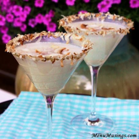 This sweet martini gets drizzled with white chocolate liqueur, and the glasses get rimmed with toasted coconut and honey. Great dessert drink!