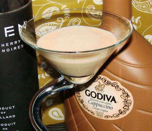 1 Combine Godiva Original Liqueur, Captain Morgan Parrot Bay Coconut Rum, and Smirnoff Black Cherry Vodka. 2 Shake with ice and strain into martini glass. 3 Garnish with chocolate shavings.