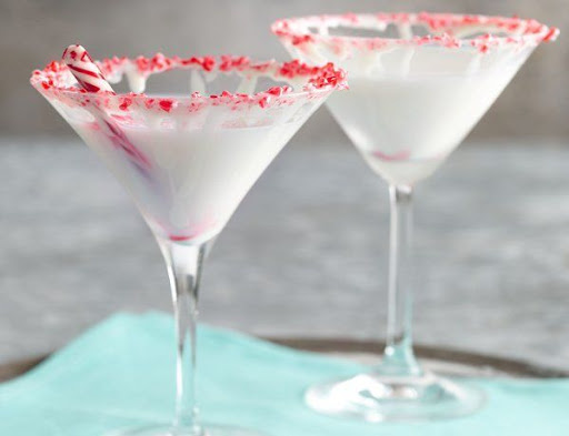 Dip the rim of a martini glass in marshmallow topping then crushed peppermint candies. Drizzle some marshmallow topping on inside of glass; place glass in freezer.