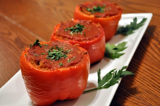 12. Stuff each bell pepper with the cooked mixture until almost full 13. Top each bell pepper with remaining tomato sauce and Italian seasoning mixture.