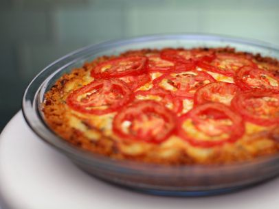 Meanwhile, put the Cheddar crackers, butter, egg and bacon in food processor and process until well combined. Press the mixture into a 9-inch pie plate. Combine the cheese, mayonnaise, garlic and jalapeno in a medium bowl. Spread the mayonnaise mixture in an even layer in the crust and top with the tomato slices, overlapping them in a circle. Brush the tomatoes with olive oil and bake until the Cheddar is melted, the tomatoes are curling and the crust is starting to brown, about 45 minutes.