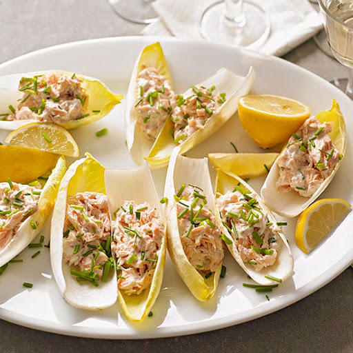 A super easy recipe! Just steam the salmon, flake it and combine with cream cheese and chives and serve with endive and lemon wedges.