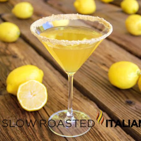 Fill a cocktail shaker with ice, vodkas, amaretto, lemon juice and simple syrup. Shake to chill and combine. Pour into prepared martini glasses.