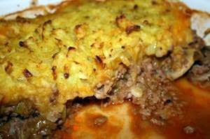 Scoop the mixture into a large baking dish and spoon dollops of mashed parsnip over the top. Bake for about 25 minutes until the topping is golden brown.