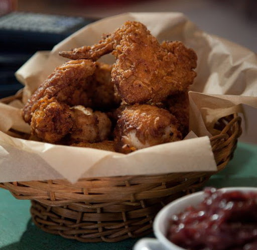 I made this two nights ago and my husband is STILL raving on how tender the chicken was. Must be the addition of sour cream to the buttermilk. Waaaay better than M.Stewart's. The mustard was a surprisingly pleasant addition to the flavors. We like our chicken with a tidge of a kick so I added a couple tablespoons of Sriracha hot sauce to the marinate. After frying, I baked the breasts and wings for 20 minutes, removed them from the oven and left the thighs and legs in for an additional 15 minutes. Keep the pieces elevated on a small wire rack over a baking pan so that the oven heat can swirl all around them. The trick I've learned to getting the coating to stick to the skin is to refrigerate the pieces for 1/2 hour before frying. This is my forever fried chicken recipe from now on. Can't imagine how it can be improved. Thanks Alex, you've got my vote for the Next Iron Chef!!