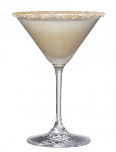 Rim martini glass with cinnamon and sugar crystals and set aside. Pour all ingredients into a shaker with ice and shake. Strain into the martini glass.