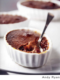 This dish is a variation on the traditional crème brûlée recipe said to have originated at Trinity College in Cambridge, England. The ultimate topping of a crackled crust of caramelized sugar covers the sensually sinful, silky custard flavored with dark chocolate to complement the sour cherries inside. Use a best quality chocolate such as Callebaut, Valrhona, or Scharffen Berger.—Tina Salter