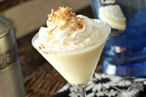 Strain into glass. Top with whipped cream and toasted coconut as desired.