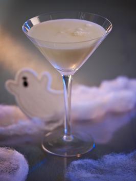 Casper melted into your martini glass! Serve this spooky-white cocktail at your Halloween party. Made with vodka, vanilla syrup, cream, and soda.