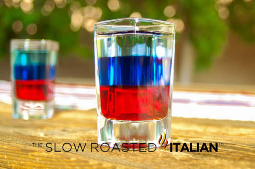 Simply pour each part slowly into a shot glass in order: red, blue and white. Serve and enjoy!