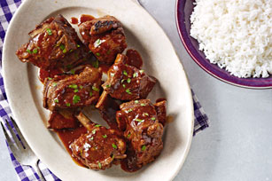 Finger food with a kick! Chipotle peppers add a little spice to these slightly sweet short ribs that are served on a bed of rice.